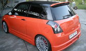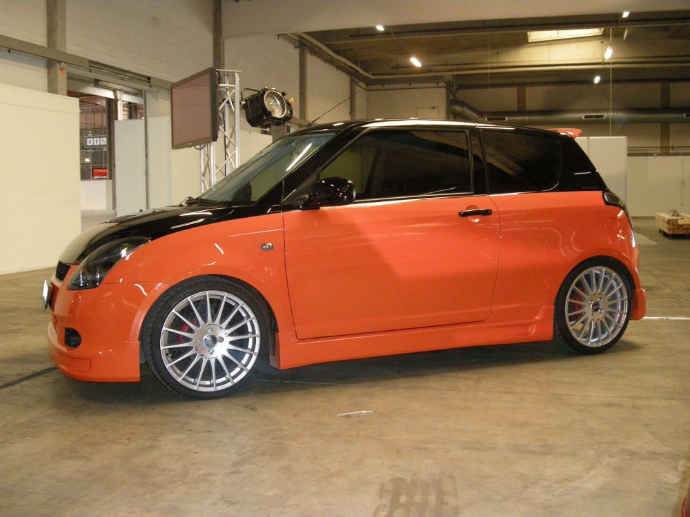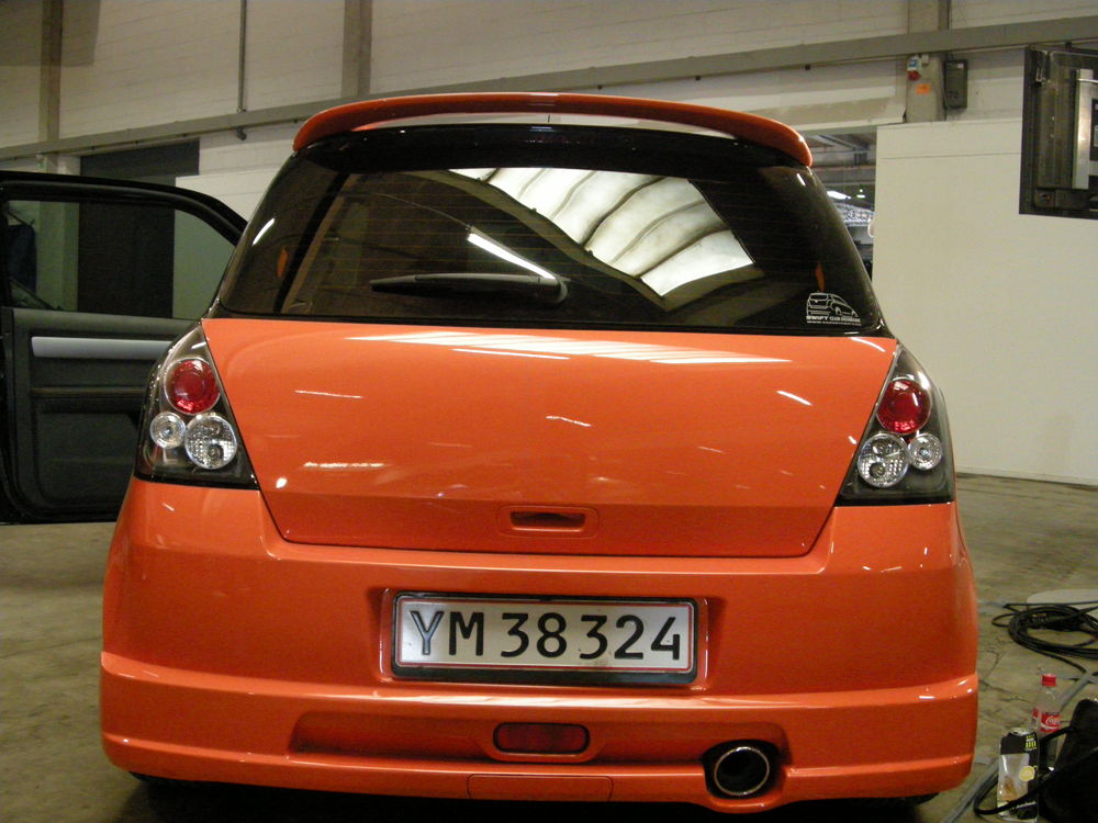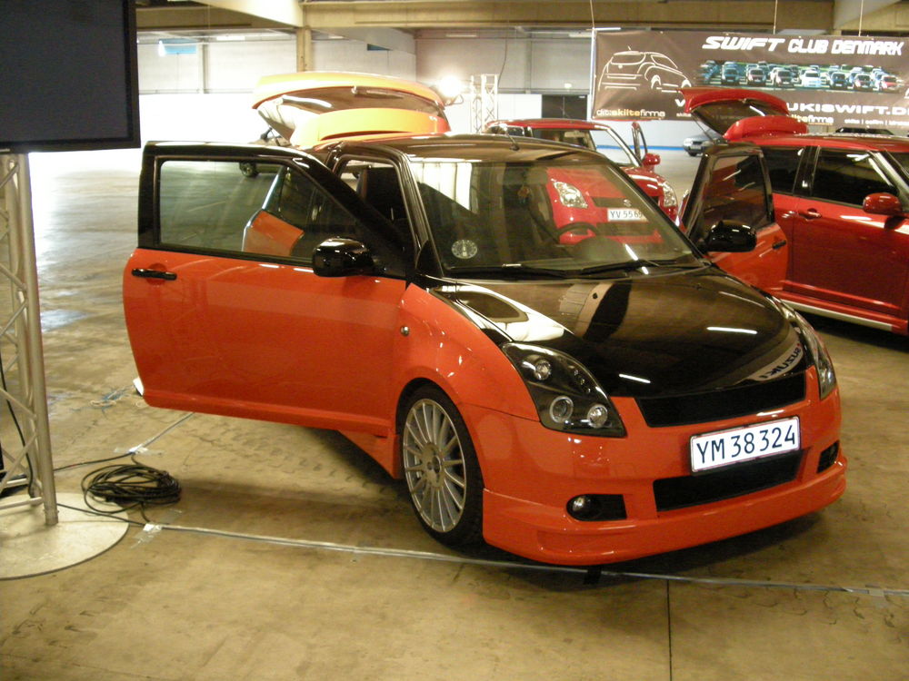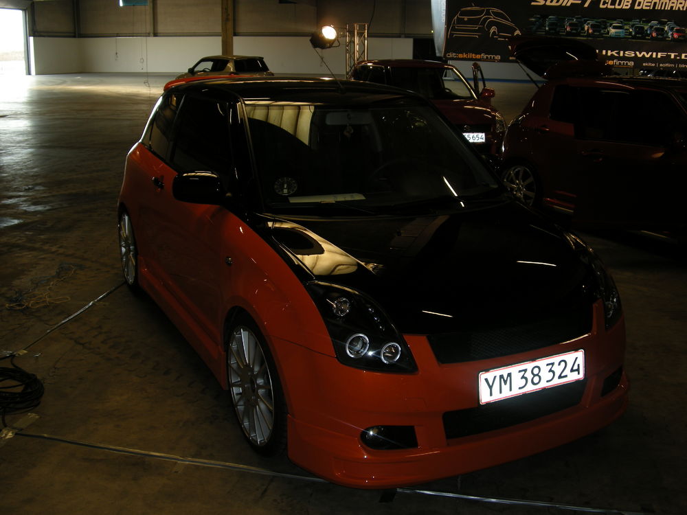 Beskrivelse: Nye billeder af swiften, efter den blev lakeret 2 farvet, fik komplet læderkabine, nye mørke lygter hele vejen rundt, samt nye 18" OZ Superturismo