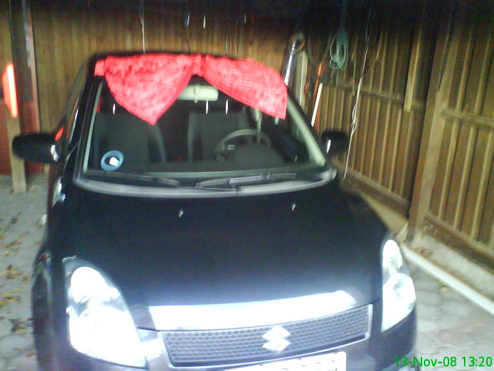 Beskrivelse: Da jeg fik af vide jeg ville få en bil i fødselsdags gave, kom jeg til at sige "så skal der også være en sløjfe på den på min fødselsdag". Så da jeg kom hjem fra skole den dag havde de gamle så pyntet den lidt:P