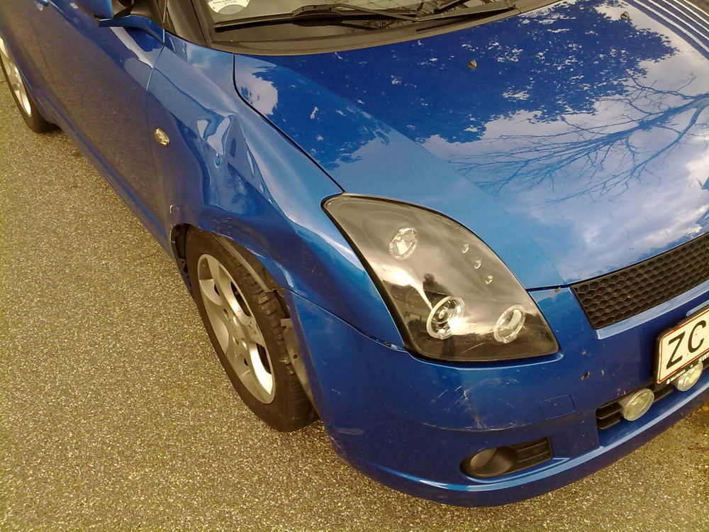 Du er da godt nok også uheldig! Det skulle vel ikke have været en Rød Swift GLX du påkørte? Der er nemlig én som har ramt min højre bagskærm, men er kørt videre!