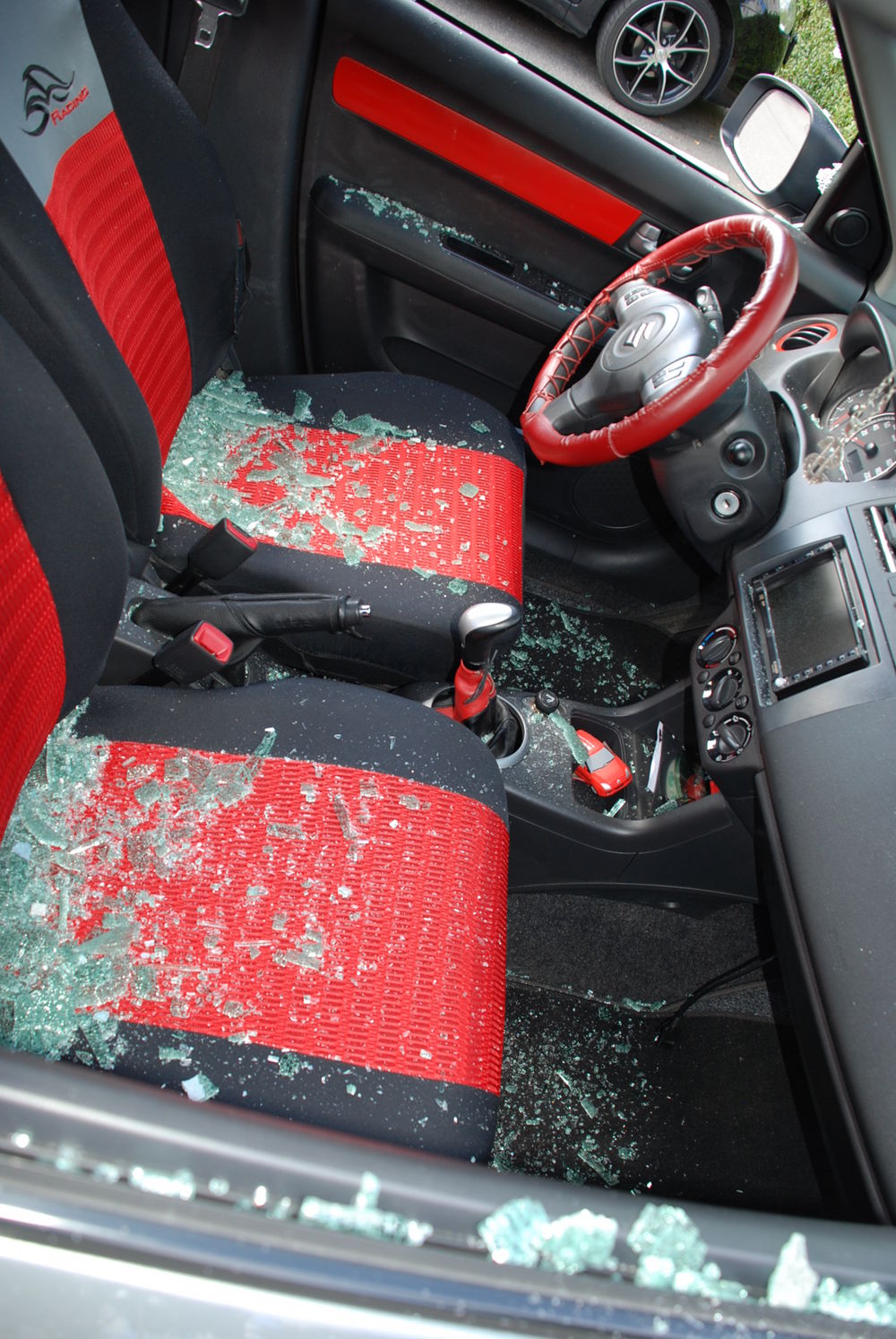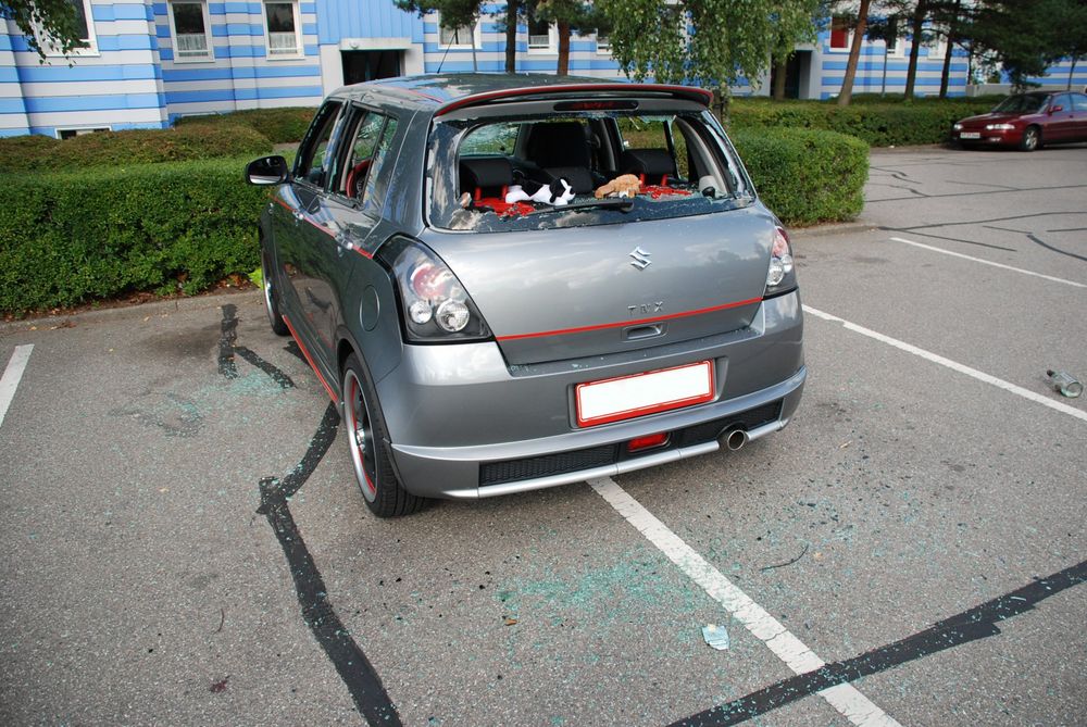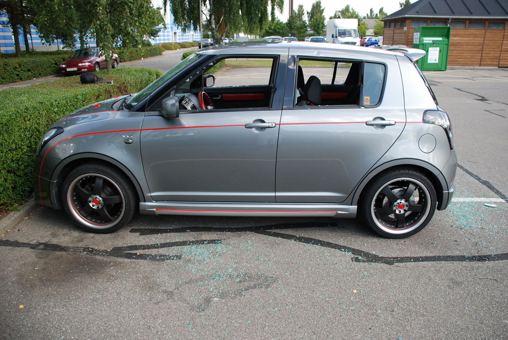 Beskrivelse: Så blev det vidst min tur til at få en omgang hærværk på Swiften.. smilie Ikke lige det jeg havde regnet med.. Alle ruder blev smadret, men ingenting stjålet i Swiften.. Så Cyberviking og jeg har brugt det meste af dagen på at støvsuge det meste af bilen, fejet omkring hvor bilen stod og hørt folk omkring de havde set noget eller ej..