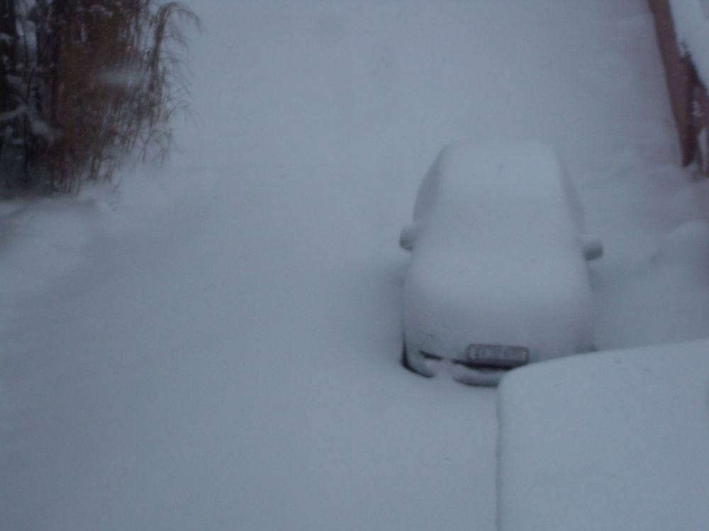 Beskrivelse: Min stakkels bil, som jeg har måtte grave fri op til et par gange....