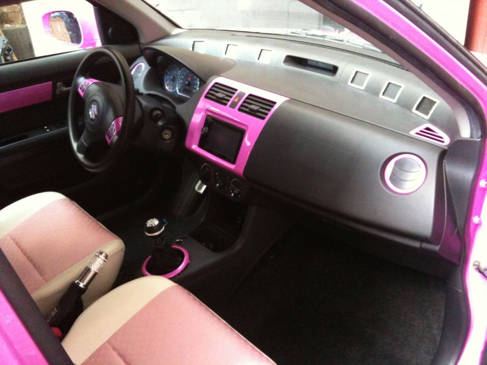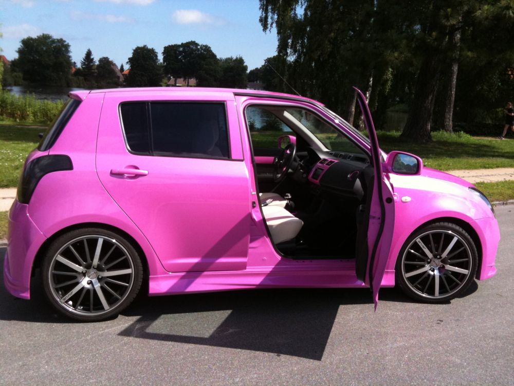 Beskrivelse: havde et uheld i februar måned så både fronthjelm, sideskærm, lygter, kofanger blev smadret. har omsider fået skiftet disse og besluttede mig for at få swift'en omlakeret i ny farve. den nye farve er super lækker, og opsigtsvækkende...en blanding af pink, lilla, og lyseblåt skær med meget perlemors effekt i.