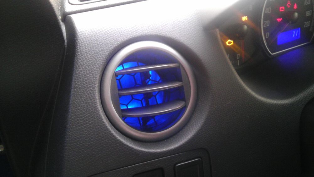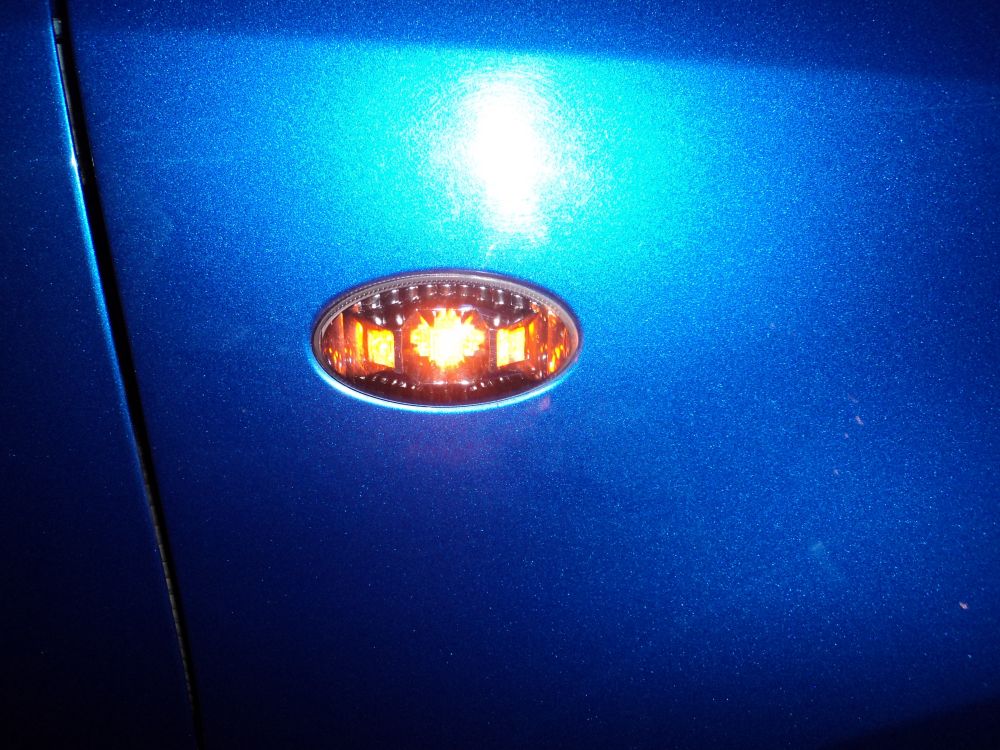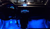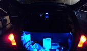 Beskrivelse: har fået alle røde dioder skiftede til blå. har fået monteret lys ved føder som er kørt på en fjernbetjening samt blåt lys i handskerummet og bagagerummet. Har fået LED blink i front og sider samt blå tonet kørelys.