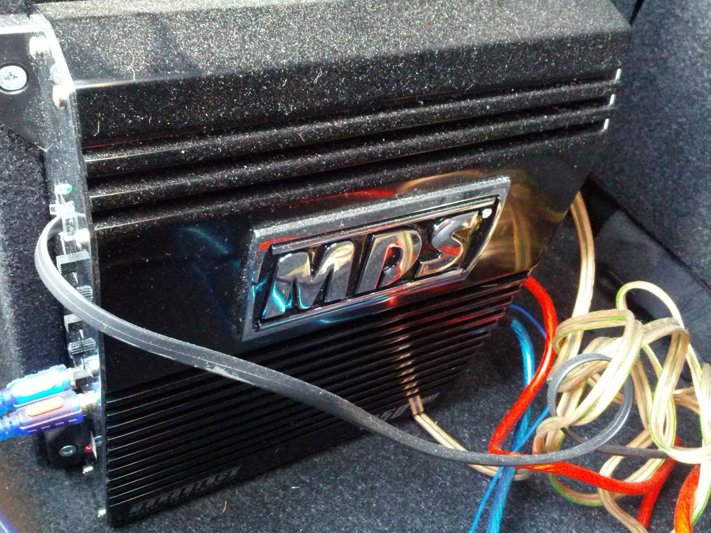 Beskrivelse: Subwoofer forstærker kabler og regulering af lydtryk