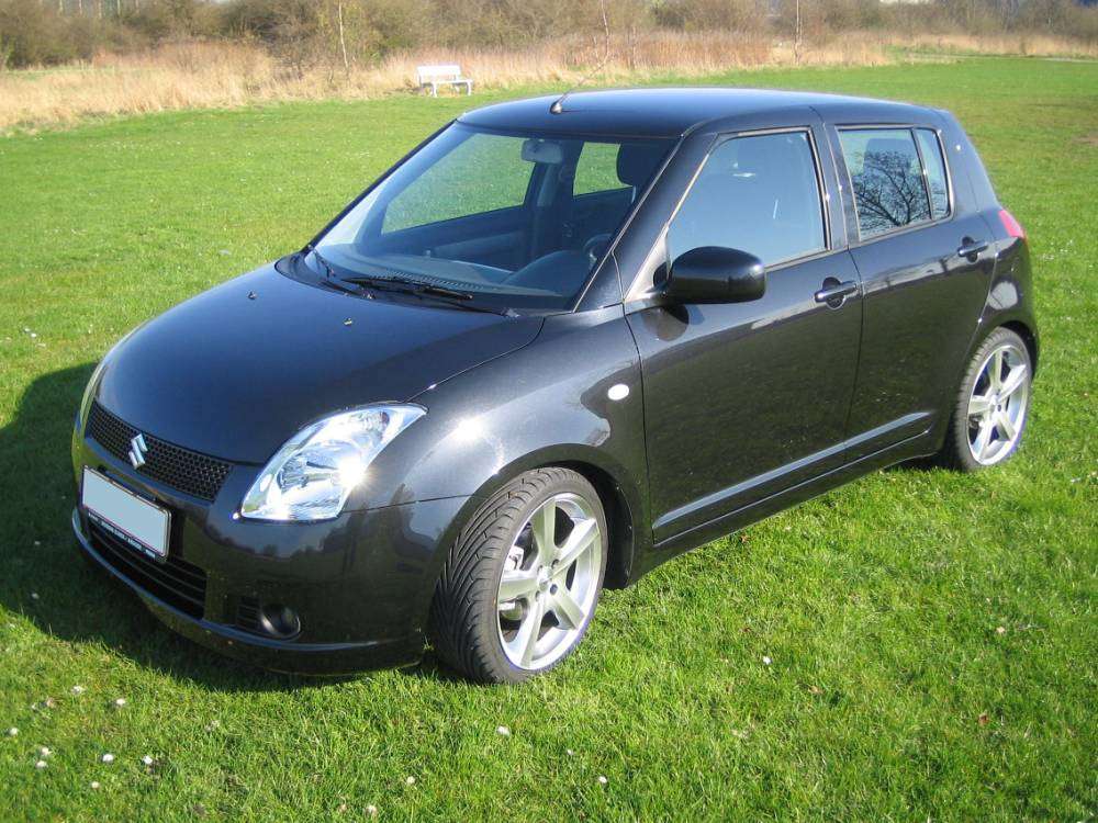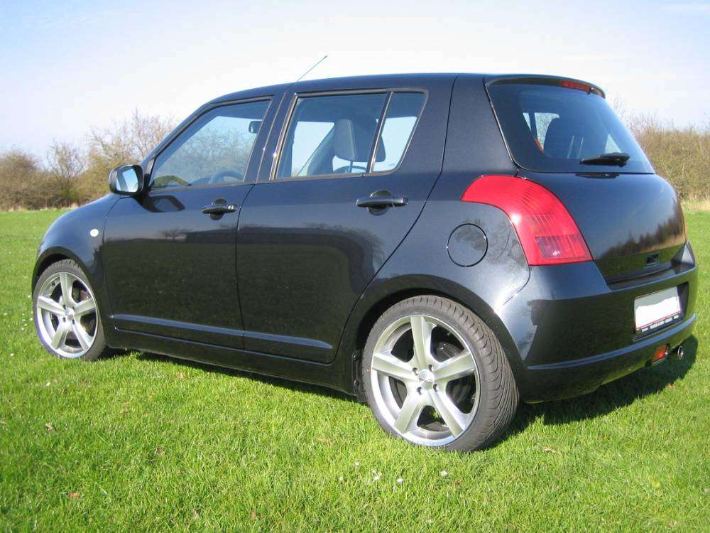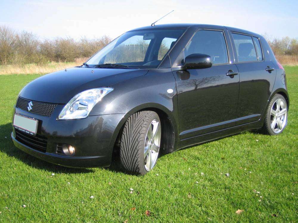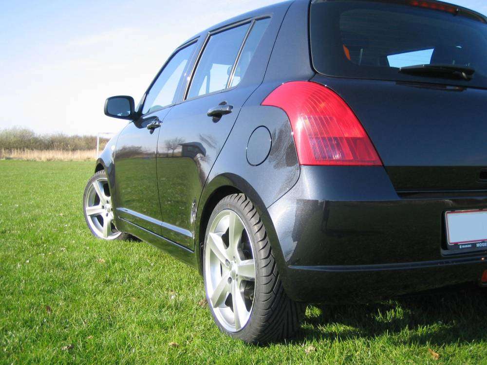 Beskrivelse: Suzuki Swift 1,5-VVT 5D, 17" Dezent F Alu-fælge, Dæk: 205/40/17 ET: 40, Aircon, Tågelygter, Rørhale, Nøglefrit låsesystem, 35mm. sænkning, sport-gearknop, CD-holder, Alu-look instrument-finish.