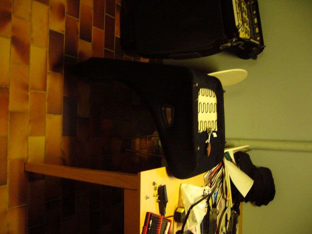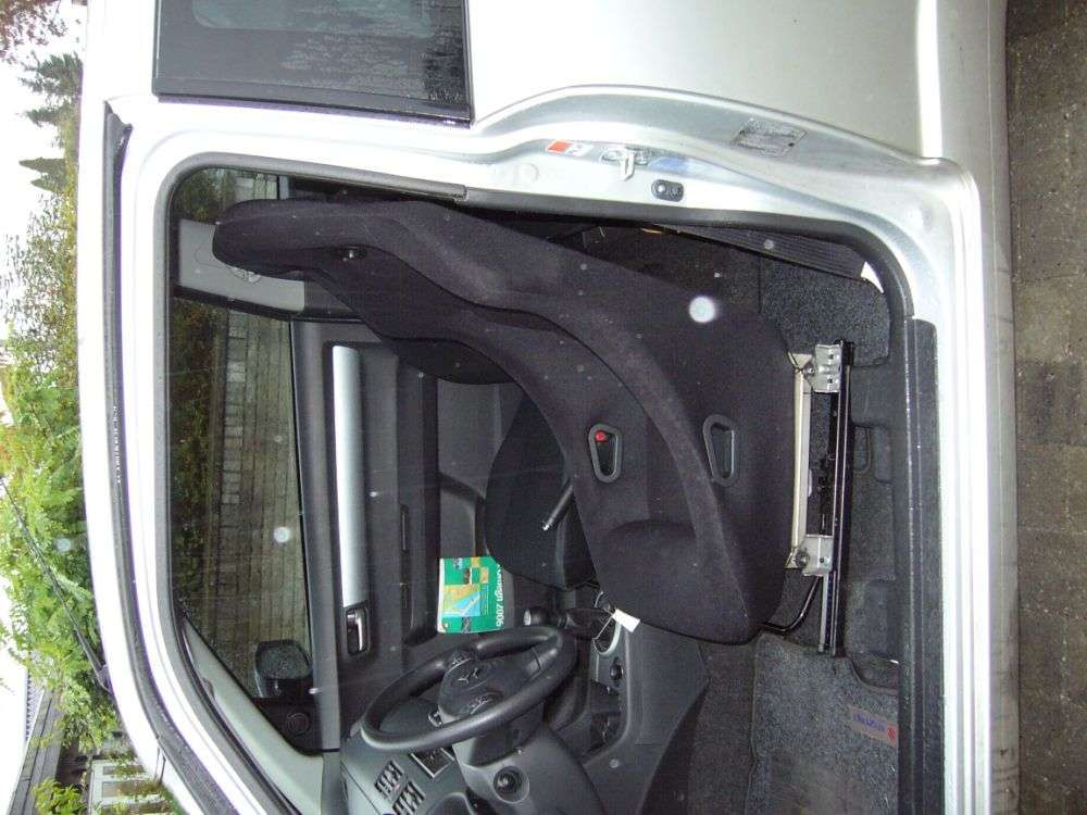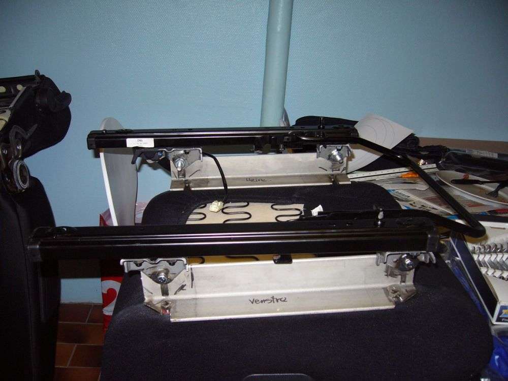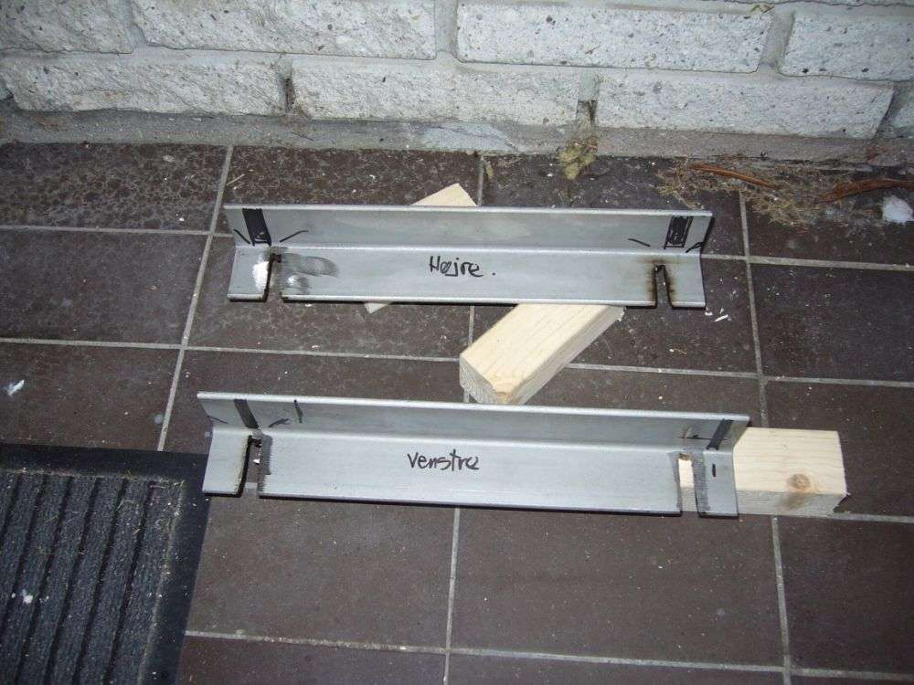fra siden. syns selv det ser fornutigt ud!!! således ser det ud. Så kom de originale glideskinner på!!! tomt ser det ud, men skålsædet er på vej. beslag til stolen. mangler lige nogle huller inden det er helt klar. stolen på hovedet. skulle mærke de originale skinner op på mine hjemmelavede beslag.