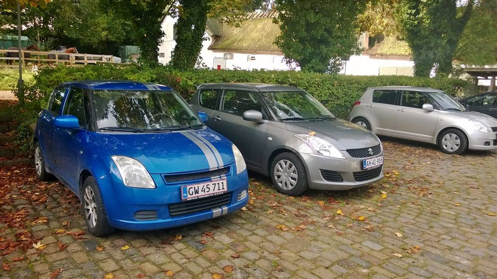 Først var der min blå Swift, så købte lærlingen en koksgrå og nu er der kommet en sølv Swift i flokken. Der udover holder der os en sx4.