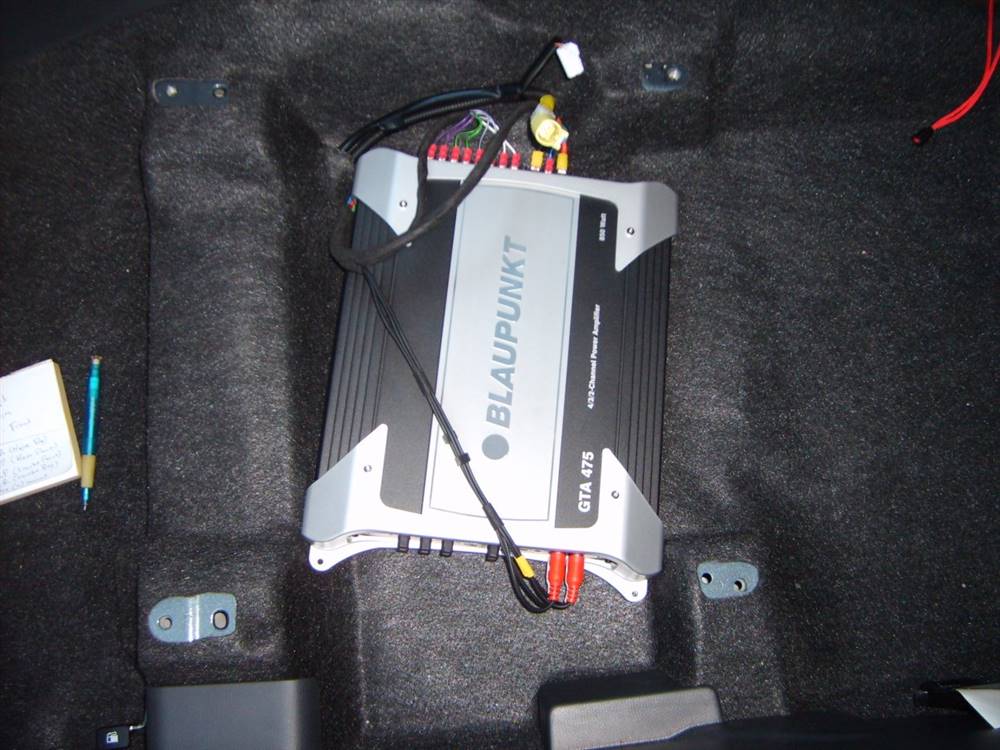 en 4 kanals forstærker og nogle billige blaupunkt højtalere, og en analog hi/low converter..???